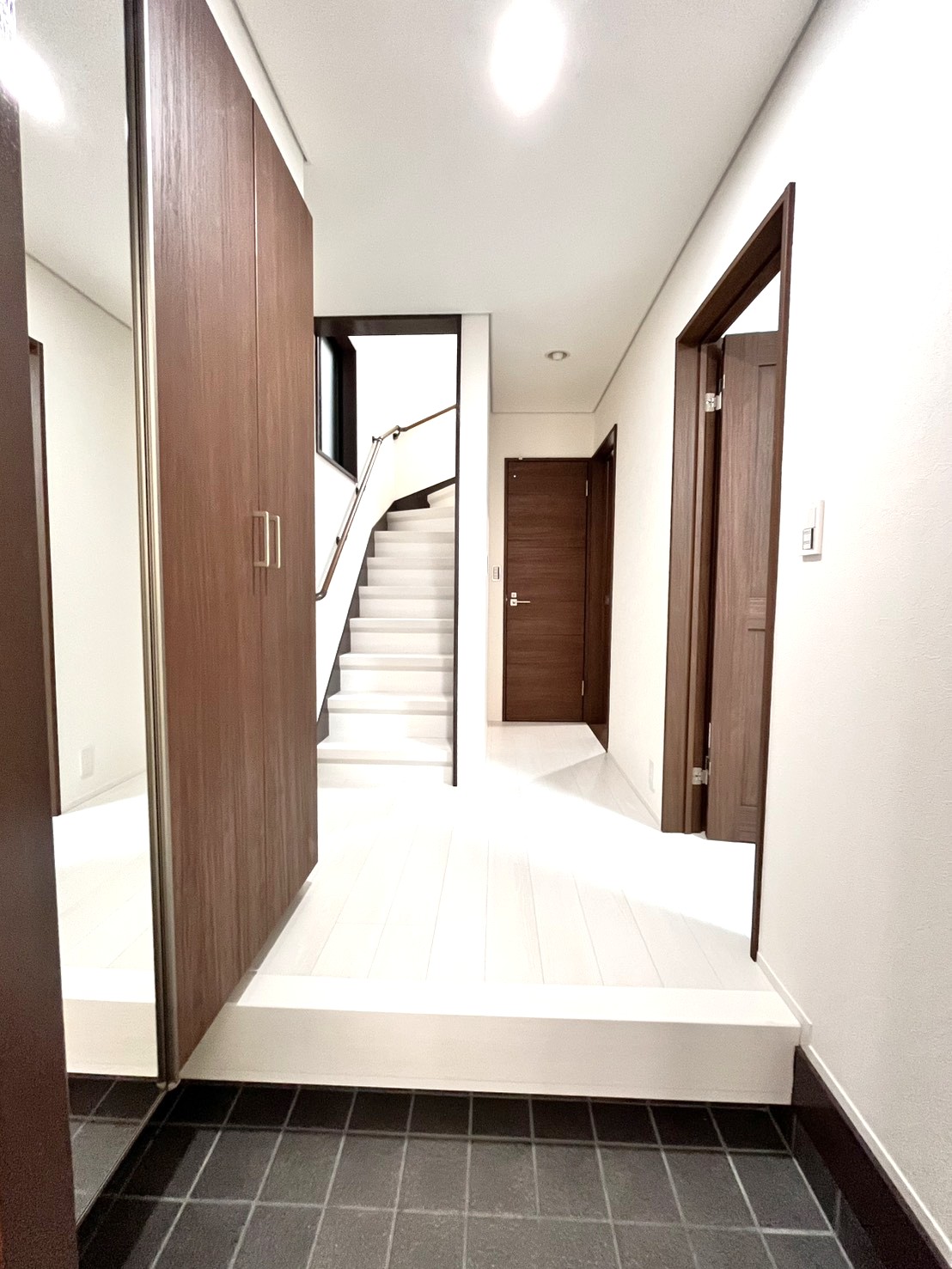 | 主なリフォーム内容 | 全室壁·天井クロス張替え 全室・廊下·階段フローリング上張り 階段手摺新規取付け トイレ・脱衣所C.F張替え 玄関扉新規交換 他 |